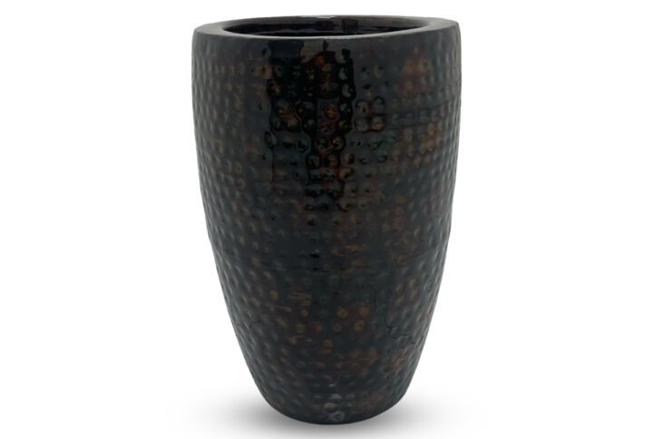 The Algae Rust Glossy Tall Curve Planter stands out with its earthy blend of algae green and warm rust tones. Crafted from durable mild steel, it features a gently curved silhouette finished in a high-gloss textured surface that captures the look of aged metals touched by nature. This combination of color and form creates a striking balance between organic and industrial style.