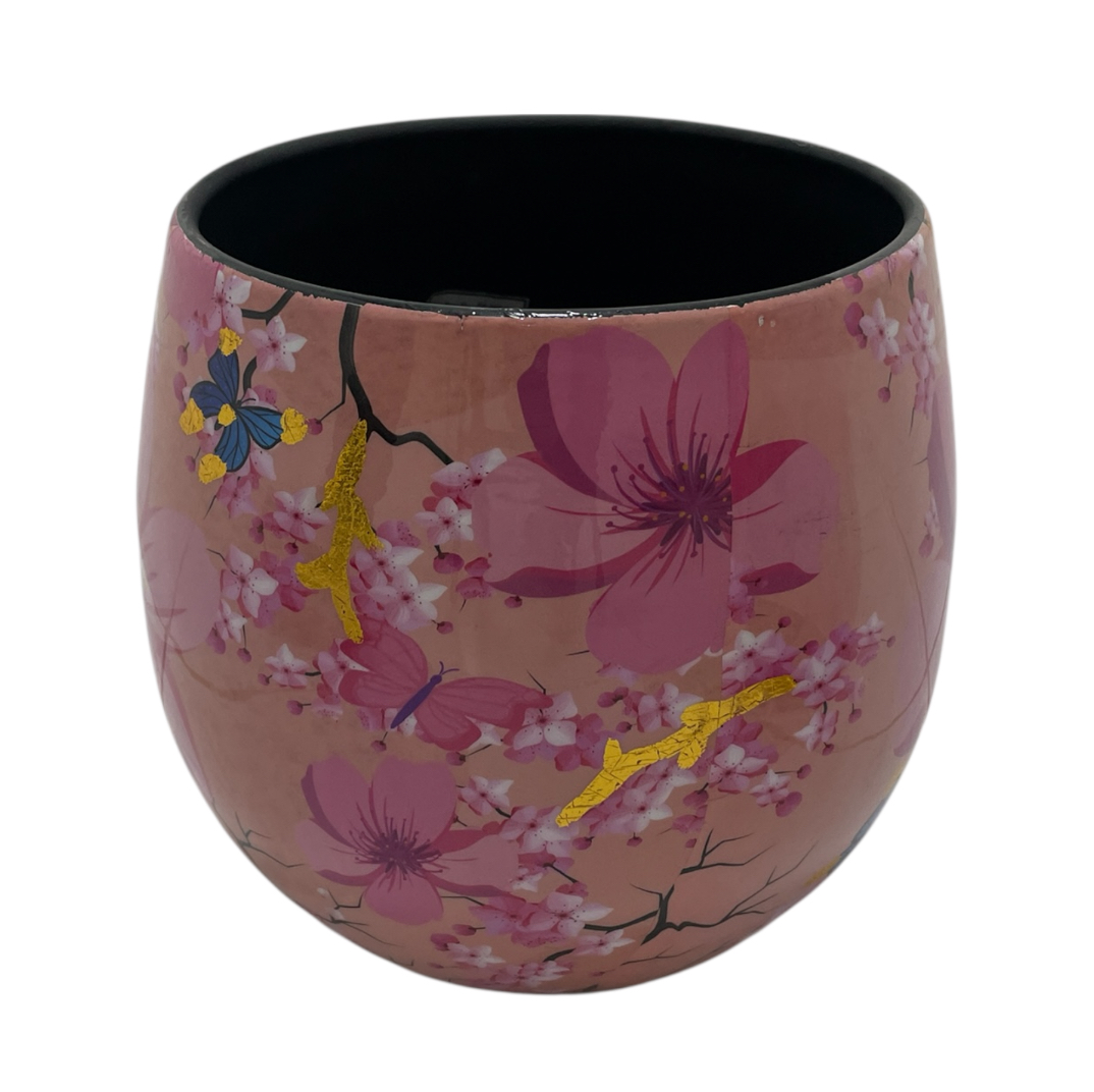 Set of 3 egg-shaped indoor plant pots from the Bloom Butterfly collection. Designed with a pink floral and butterfly pattern for colorful and stylish home decor.