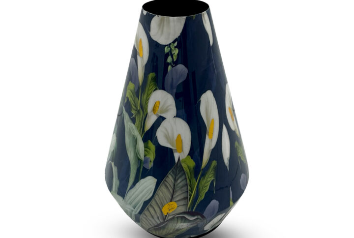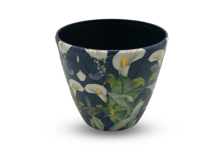 Elevate your interior with this elegant indoor decorative flower pots, crafted to complement modern home decor. Featuring a deep-toned glossy finish and adorned with graceful white calla lily artwork, these planters bring a serene, botanical charm to any living space.