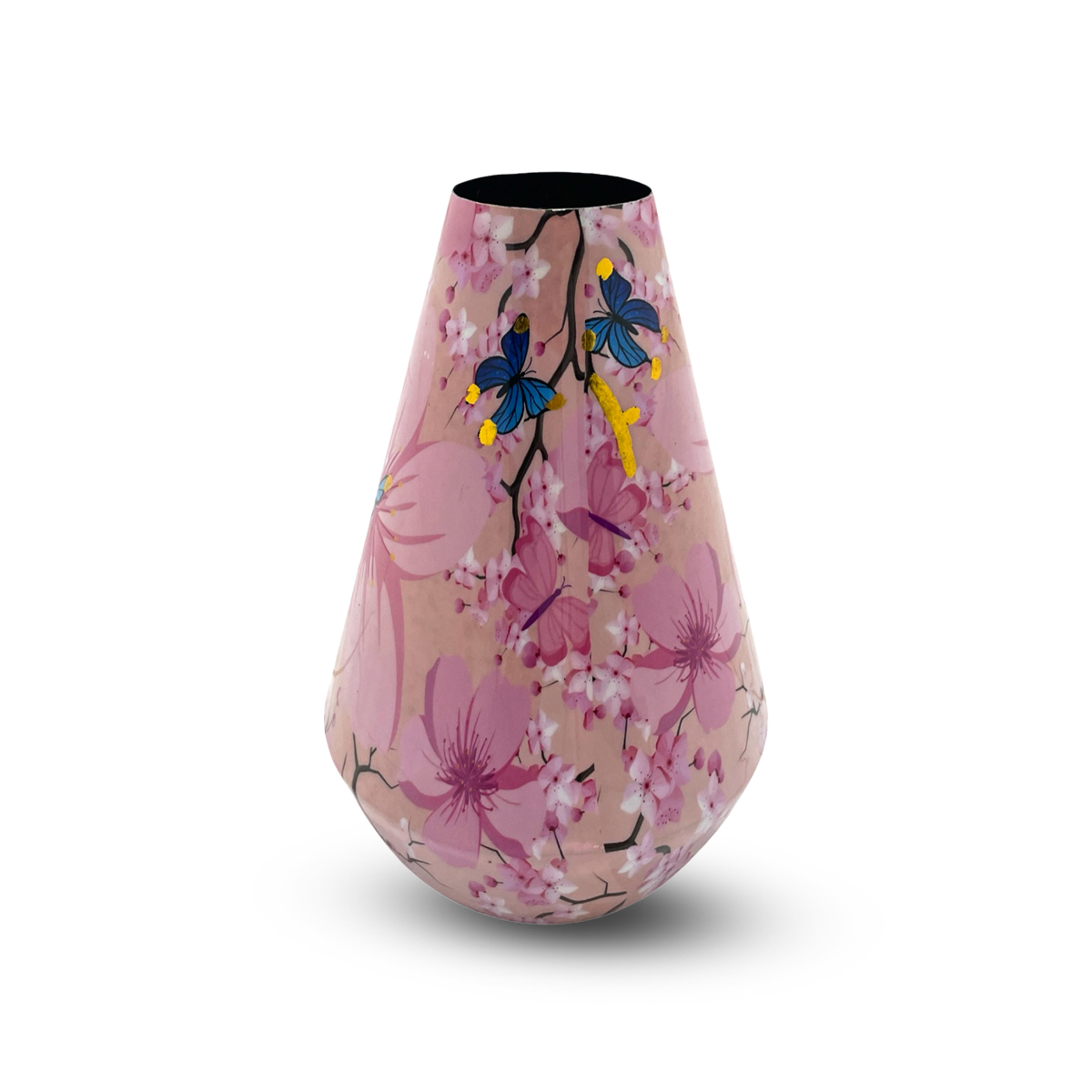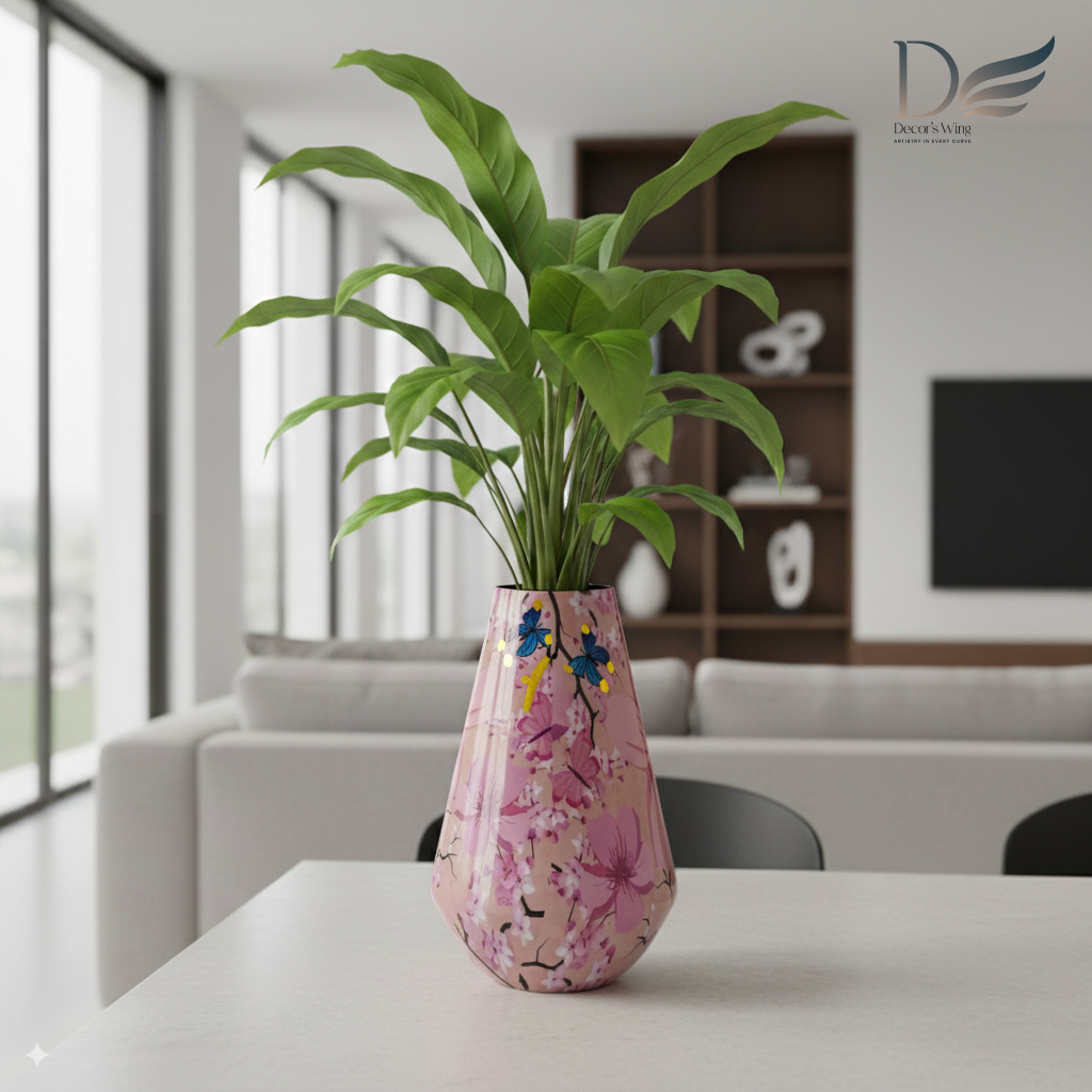 Cone-shaped indoor plant pot from the Bloom Butterfly collection. Designed with a pink glossy finish and butterfly floral artwork for vibrant and stylish indoor decor.