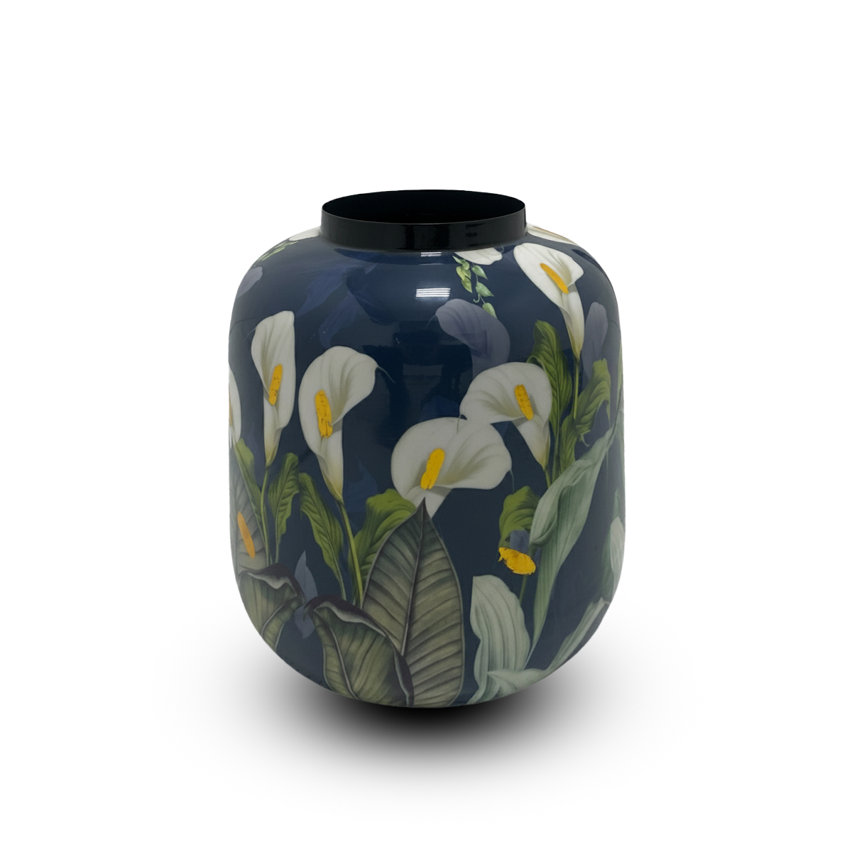 Elevate your interior with this elegant indoor decorative flower pots, crafted to complement modern home decor. Featuring a deep-toned glossy finish and adorned with graceful white calla lily artwork, these planters bring a serene, botanical charm to any living space.