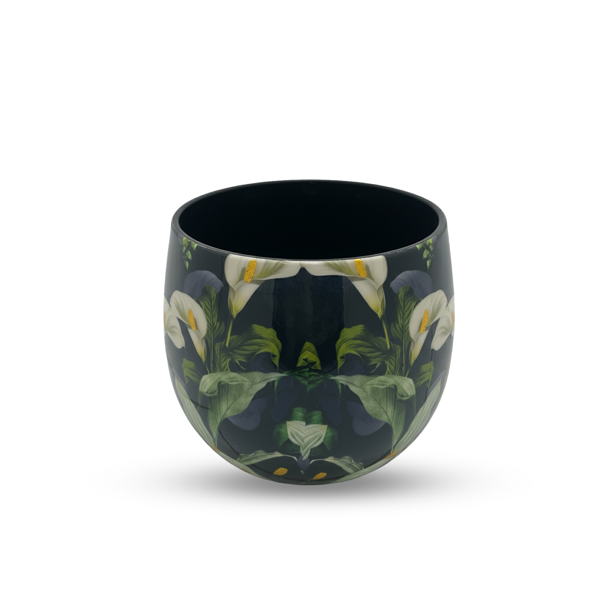 Elevate your interior with this elegant indoor decorative flower pots, crafted to complement modern home decor. Featuring a deep-toned glossy finish and adorned with graceful white calla lily artwork, these planters bring a serene, botanical charm to any living space.