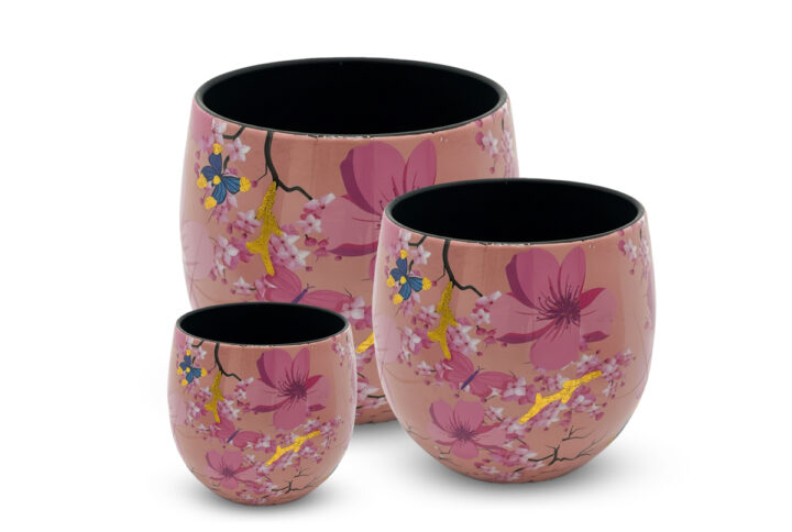 Set of 3 egg-shaped indoor plant pots from the Bloom Gloss collection. Features a glossy finish with white lily floral design for stylish and elegant home decor.