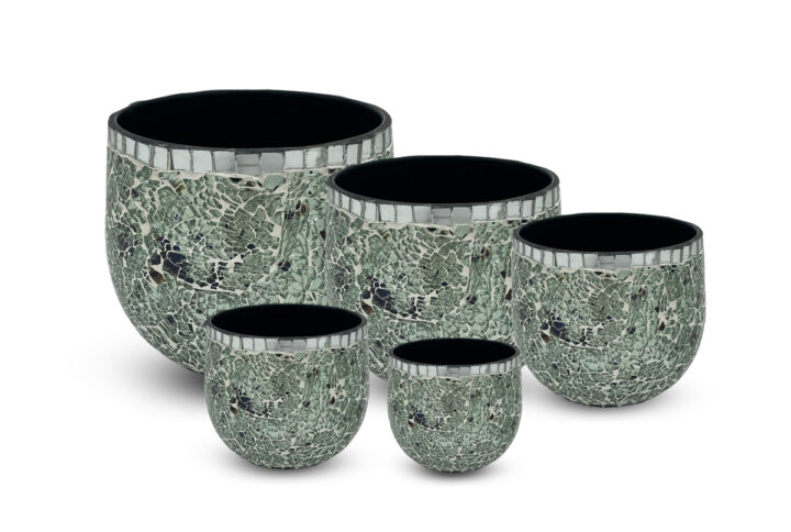 Set of 5 indoor plant pots from the Bloom Gloss collection. Features a glossy finish with white lily floral design for elegant and coordinated home decor.