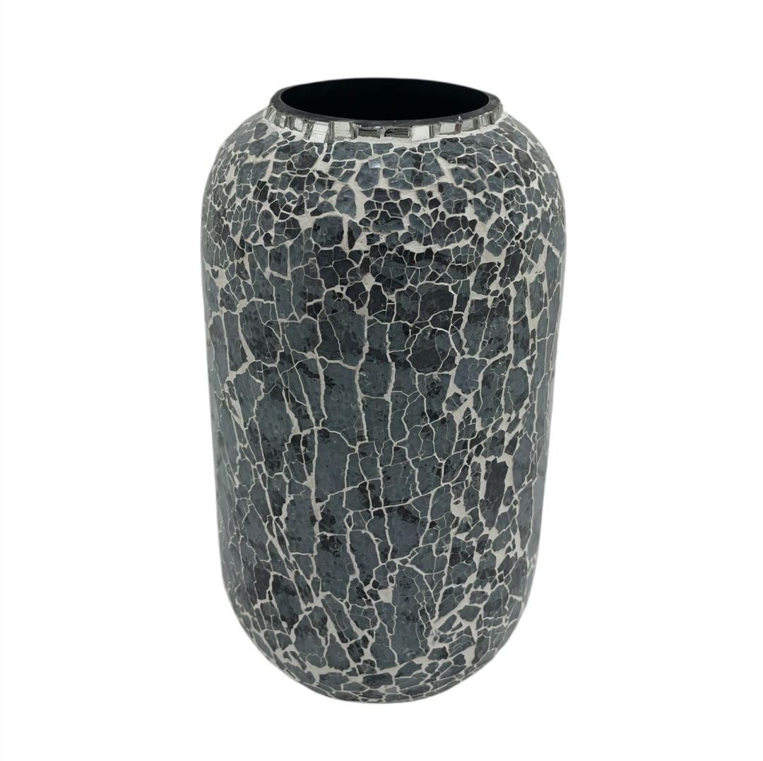 Small capsule-shaped indoor plant pot from the Blue Ice collection. Features a grey-blue mosaic tile design for stylish and compact indoor decor.