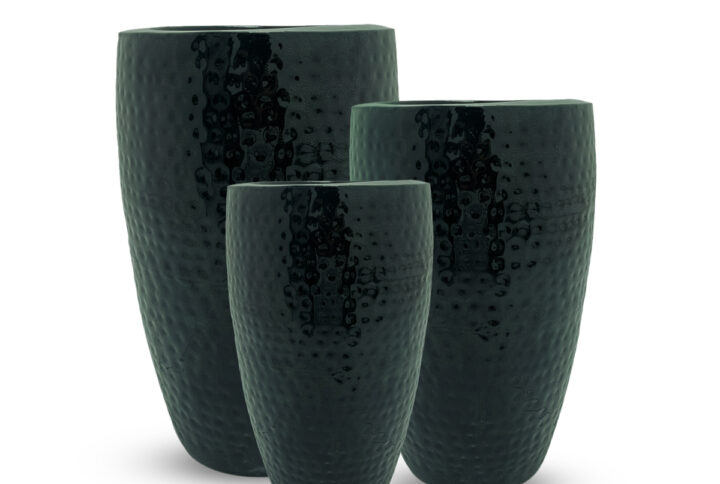 The Midnight Black Glossy Tall Curve Planter is a bold and modern planter crafted from durable mild steel. It features a tall, curved silhouette with a glossy black hammered finish that adds a refined texture and dramatic visual appeal. The sleek shape and reflective surface make it a standout piece for a variety of plant arrangements.